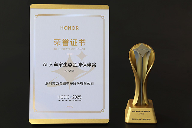10 月 23 日,以 “智联无界・生态共创” 为主题的荣耀全球开发者大会暨 AI 终端生态大会在深圳坪山盛大开幕。本次大会荣耀发布“1×3×N”生态战略,打造跨品牌、跨场景、跨设备的智能互联生态,全力构建千亿级 AI 终端生态产业集群。作为智能终端连接领域的核心领军企业,力合微电子作为合作伙伴受邀出席,发表《助力荣耀 AI 赋能智慧空间,跨品牌连接生态互联互通》主题演讲,并凭借深厚的技术底蕴、合作赋能与杰出生态贡献,荣膺 “AI 人车家生态金牌伙伴” 殊荣。